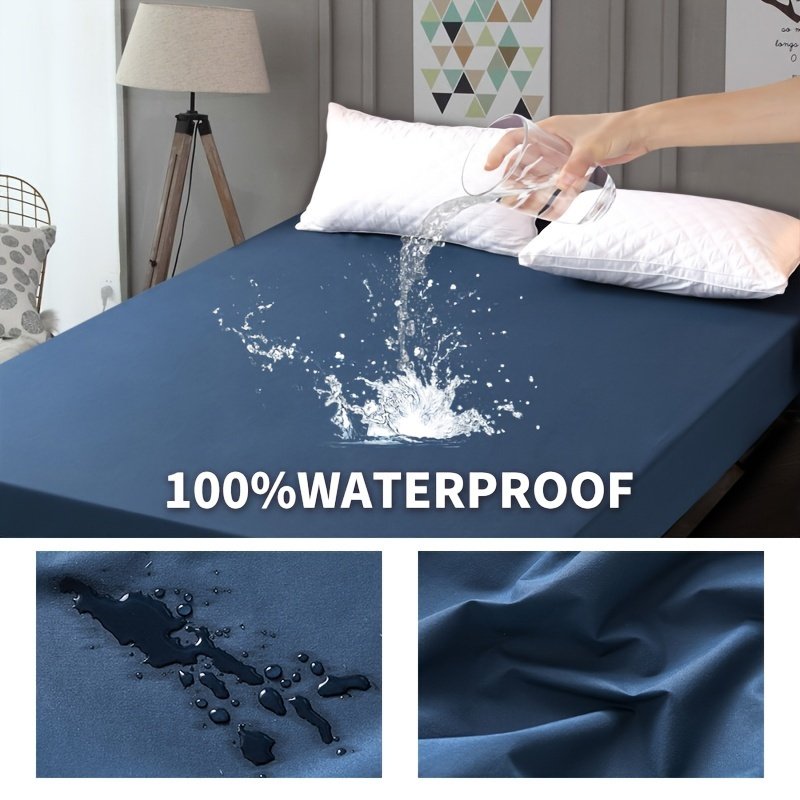 1pc Blue Waterproof Fitted Sheet, Solid Color Brushed Fitted Sheet, Soft Bedding 1pc Blue Waterproof Fitted Sheet, Solid Color Brushed Fitted Sheet, Soft Bedding 1pc Blue Waterproof Fitted Sheet, Solid Color Brushed Fitted Sheet, Soft Bedding