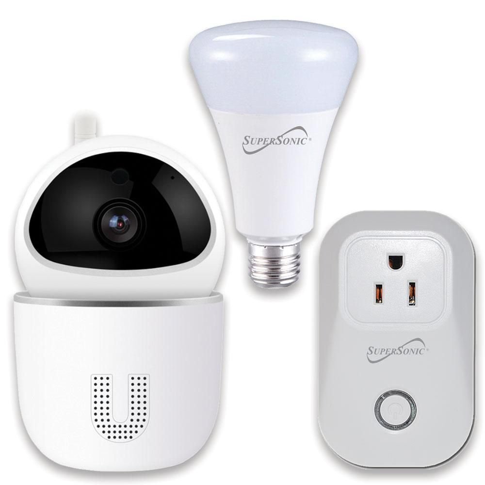 Supersonic 3-Pc. Smart Home Starter Kit with WiFi enabled: HD Camera, Plug, & Bulb Supersonic 3-Pc. Smart Home Starter Kit with WiFi enabled: HD Camera, Plug, & Bulb Supersonic 3-Pc. Smart Home Starter Kit with WiFi enabled: HD Camera, Plug, & Bulb