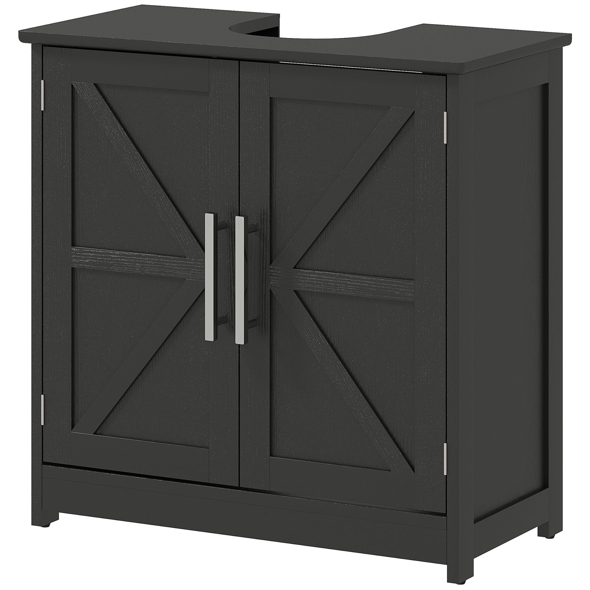 Home > HOMCOM Farmhouse Pedestal Sink Storage Cabinet, Bathroom Sink Cabinet with 2 Barn Doors and Adjustable Shelf, Distressed Black